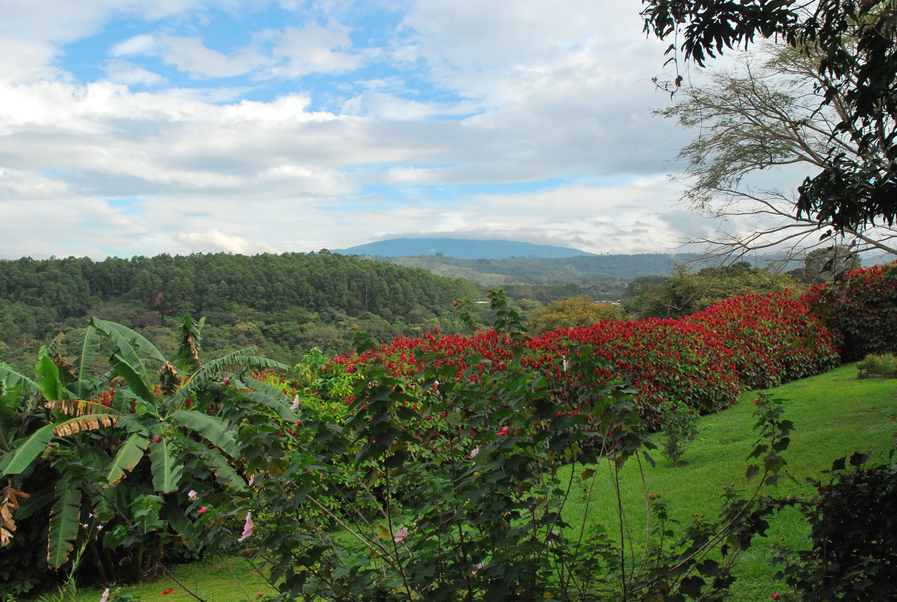 La splendide vue de l’hôtel Chez Pierre donne à même la vallée.  Tout près, culminant du haut de ses 2704 mètres, le volcan Poas, est le fort attrait touristique de la région. Souvent terré derrière une mer de nuages, son sommet est néanmoins facile d’accès.  On peut y observer son cratère principal qui laisse s’échapper des fumerolles de souffre et qui abrite un lac turquoise.  Toujours actif, le Poas est entré en éruption pour la dernière fois en 1952 et gronde fréquemment depuis 1989, presque tous les mois, en émettant des gaz souffrés.  Le volcan est l’un des cinq très actifs des 116 volcans du Costa Rica.