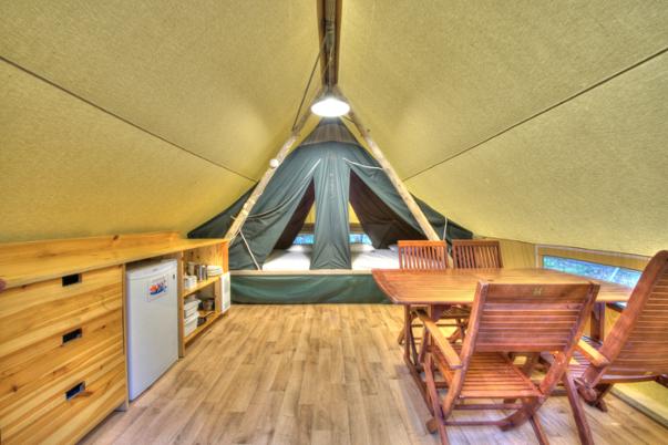 Stéphanie Rouillard de l’Oasis du Bonheur devant sa yourte authentique mongolienne. L’endroit compte aussi un chalet pouvant accueillir 6 personnes et un original Tipi avec une porte 😉