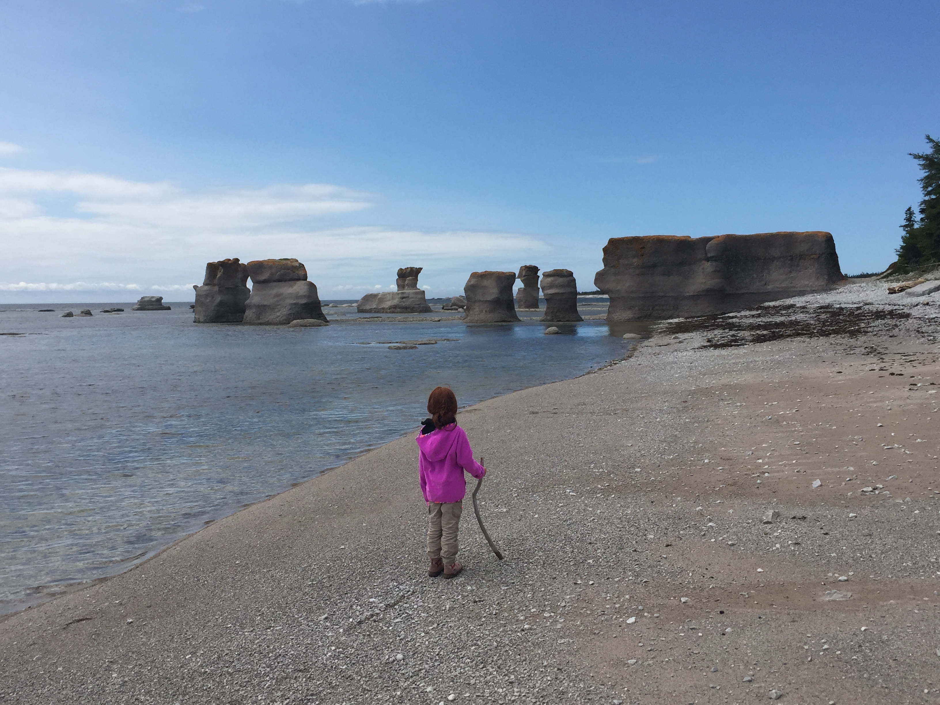 À même les rochers, j’ai pu observer le passage des glaciers à l’aide de ma guide Émilie et de son acolyte Sabrina. Contempler une marmite de géant, une énorme cavité creusée lentement par l’eau des glaciers. Admirer les tableaux lumineux qu’offraient le mariage entre le vert foncé des épinettes et celui plus clair des jeunes feuilles printanières des bouleaux. Randonner autour du splendide lac Lac Haie, encaissé entre les immenses falaises résultant d’une faille géologique datant de l’ère glaciaire. Les Témiscabitibiens mentionnent d’ailleurs régulièrement les 22 000 qui parsèment la région. Ils en sont fiers.